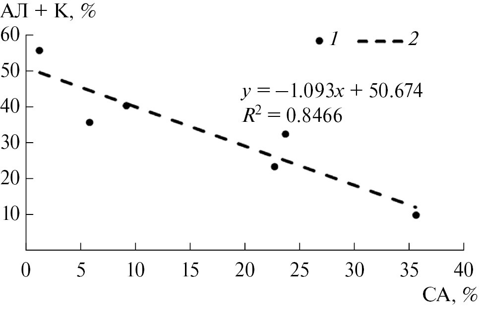 В исследованных биотопах суммарная концентрация карбоновых кислот различалась по принципу антропогенного влияния – чем оно сильнее, тем меньше их концентрация. Высокие концентрации карбоновых кислот отмечены в ряду Мантинсари (61.1 мкг/г), Лехмолахти (42.08 мкг/г), Вороново (20.47 мкг/г), низкие – у устья р. Волхов, зал. Импилахти и Свирской губе (0.41, 1.27 и 3.53 мг/г соответственно) (табл. 3). Число обнаруженных в образцах карбоновых кислот также зависело от антропогенной нагрузки и было больше в чистых биотопах литоральной зоны (рис. 2).