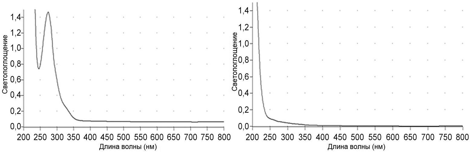 Наличие фенольного компонента в пептидах было также подтверждено УФ-спектрами по наличию полосы с максимумом при 270 нм, одинаковой для всех ГК-модифицированных пептидов (рис. 2).