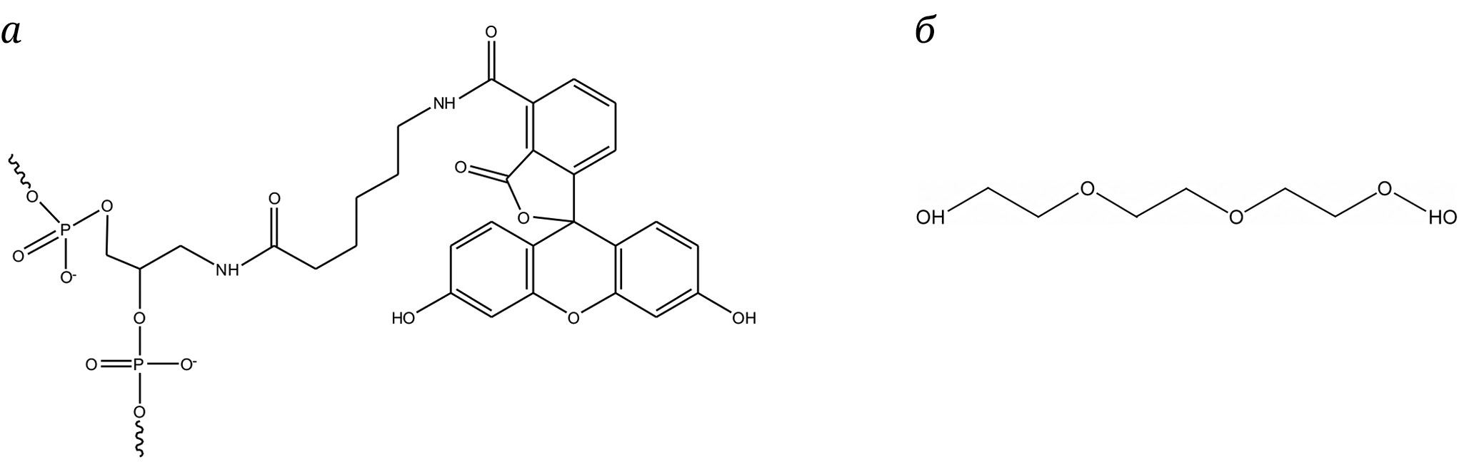 Рис. 1. Химические структуры nFlu (а) и TEG (б)
