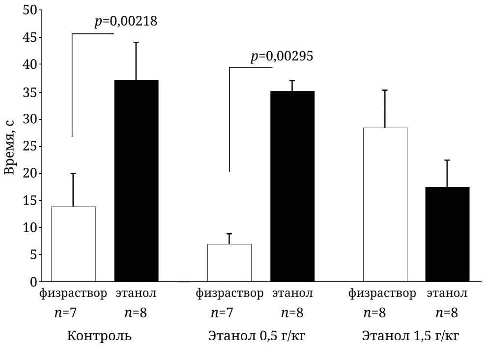 Физраствор / этанол | Контроль | Этанол 0,5 г/кг | Этанол 1,5 г/кг |