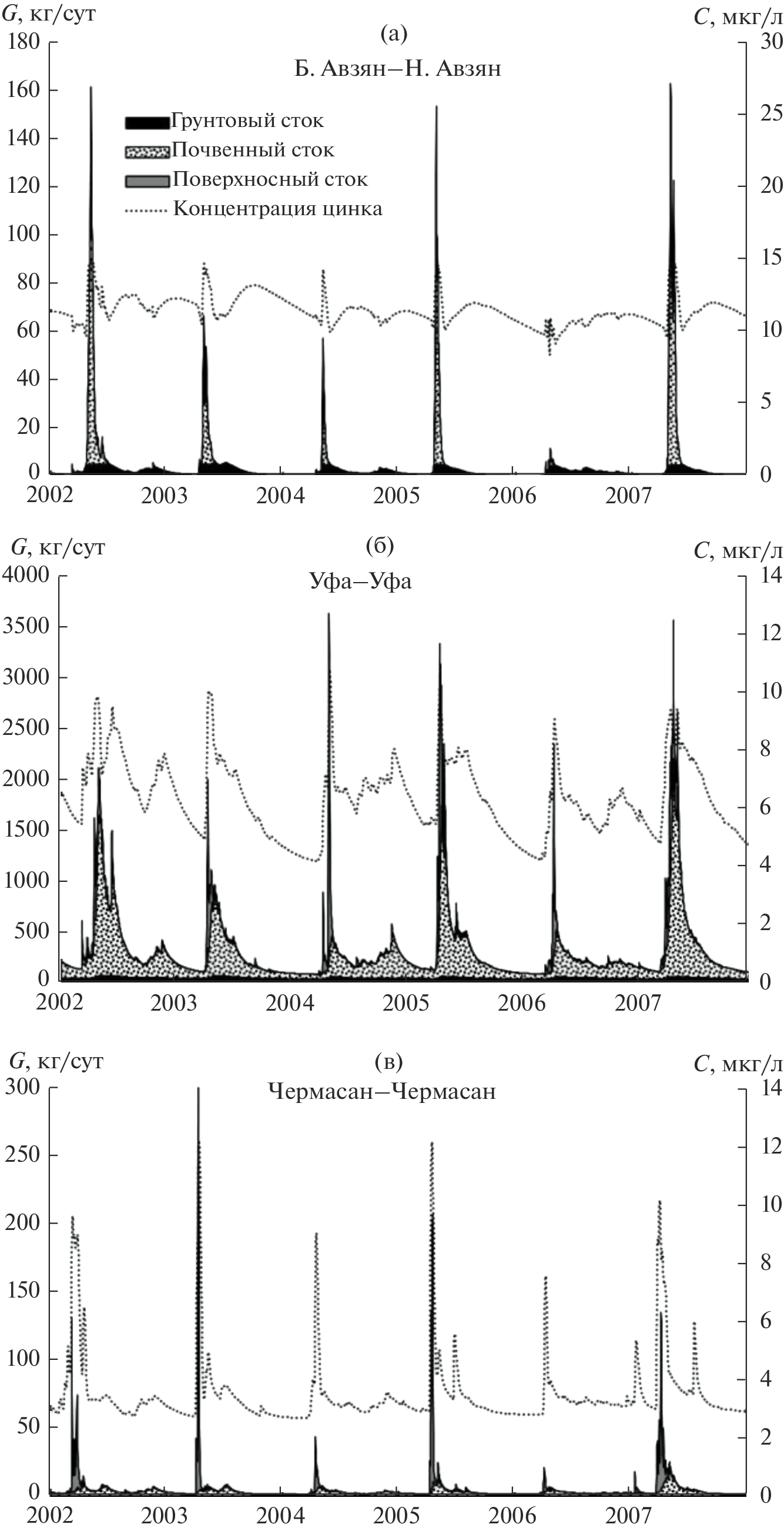 - Фащевская Т.Б., Мотовилов Ю.Г., Шадиянова Н.Б. Природные и антропогенные изменения содержания железа, меди и цинка в водотоках Республики Башкортостан // Вод. ресурсы. 2018. Т. 45. № 6. С. 603–617.