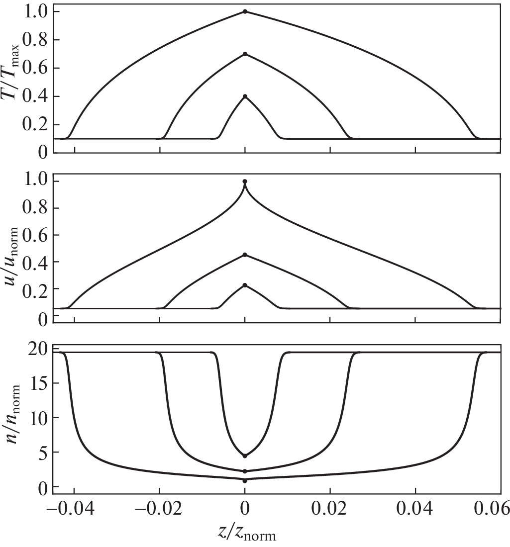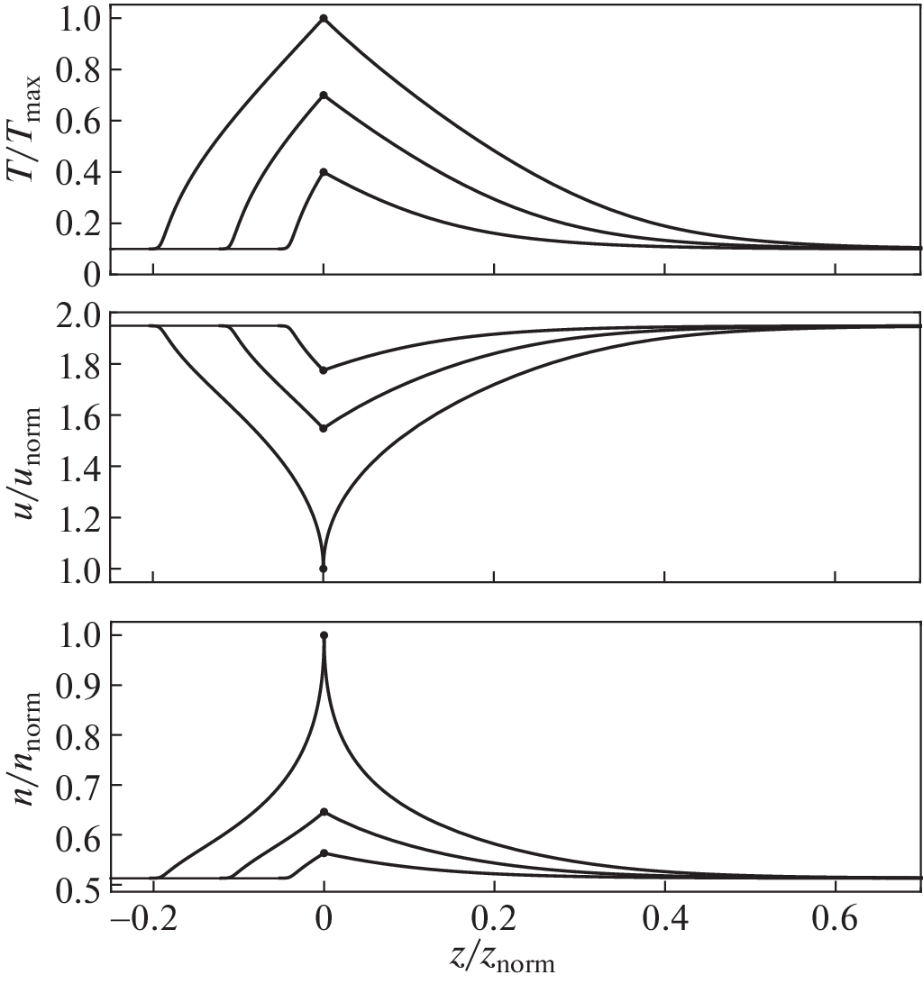 The paper presents a one-dimensional gas-dynamic model that gives an opportunity to establish the necessary conditions for the emergence and determine characteristics of a stationary flow of a compressible continuous medium with nonlinear thermal conductivity, an example of which is a fully or partially ionized plasma, in the presence of a localized heat source with a given power.
