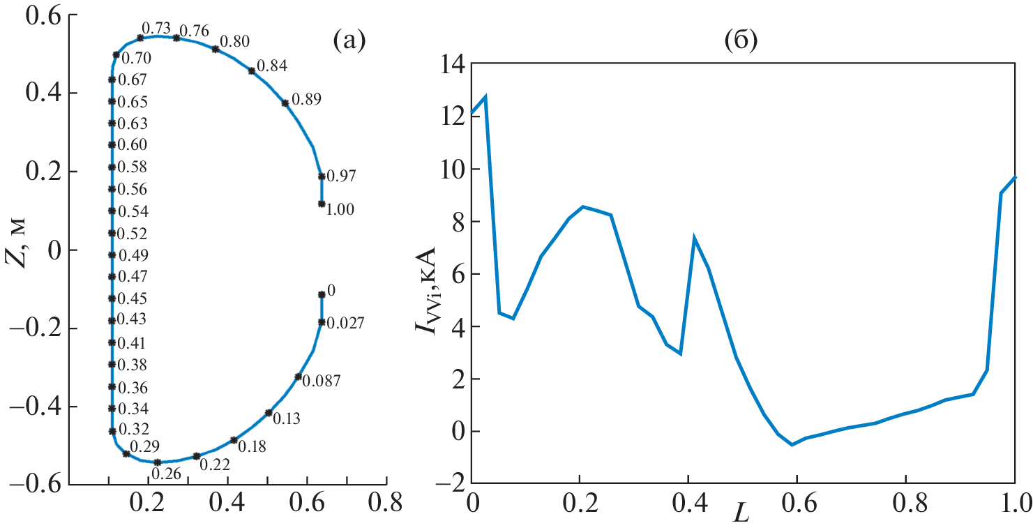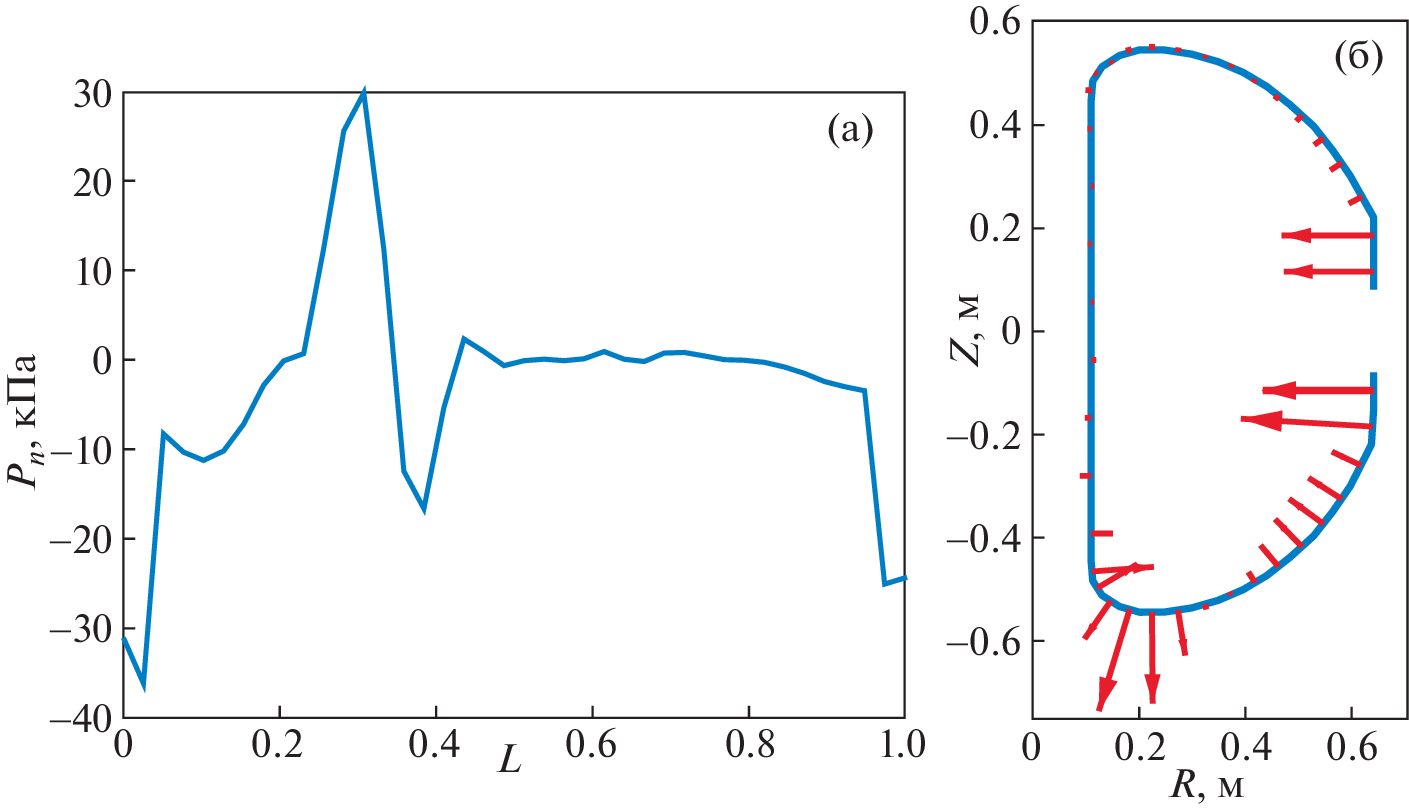 of the vessel is determined on the basis of magnetic measurements. Electromagnetic loads on the vessel are