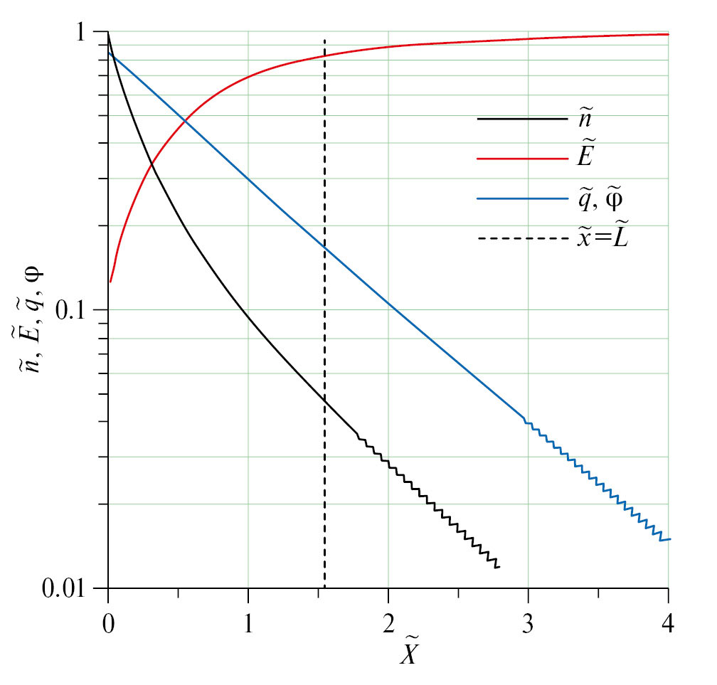 Безразмерные плотность электронов и удельное сопротивление находятся из решения уравнений (13), (14) с граничным условием .