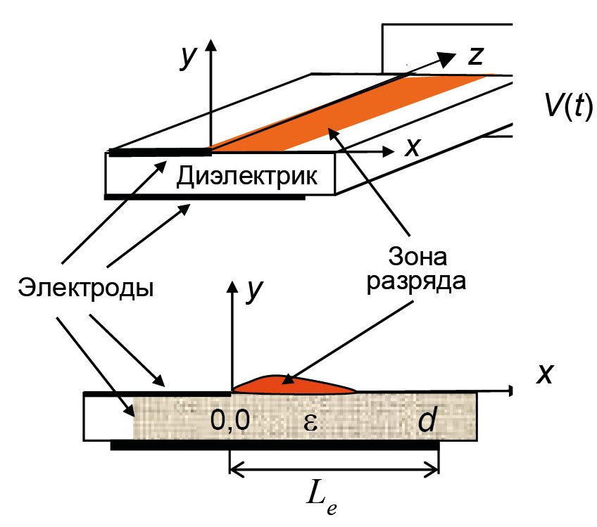 Рис. 1. Схема реализации поверхностного барьерного разряда
