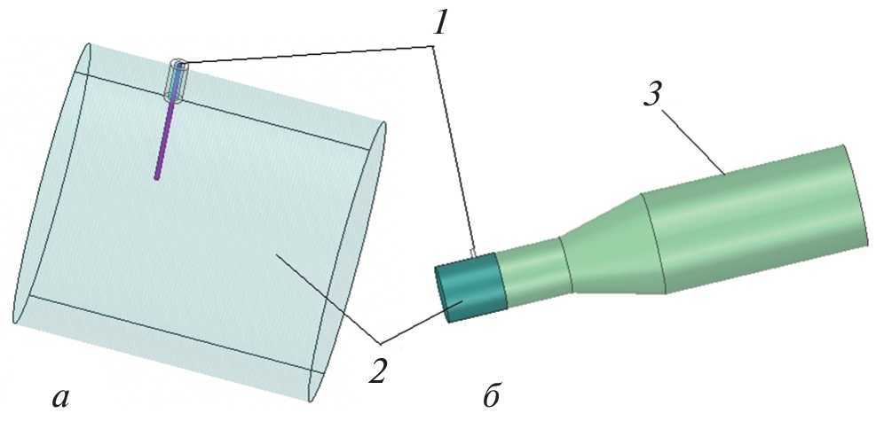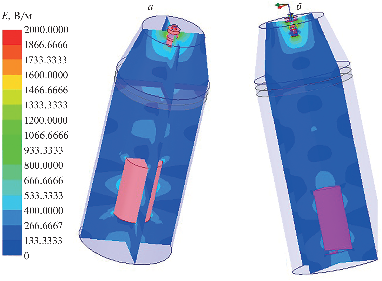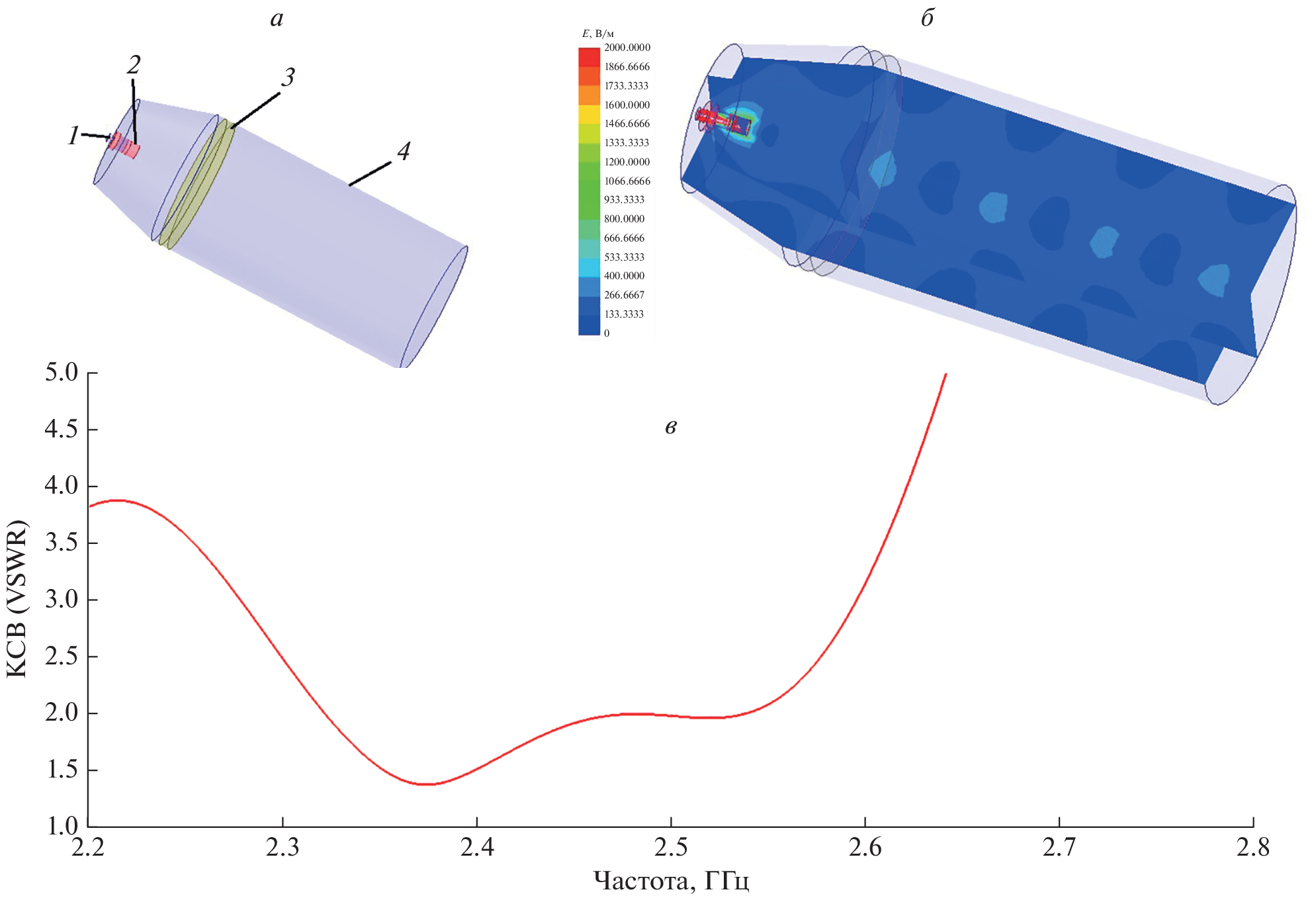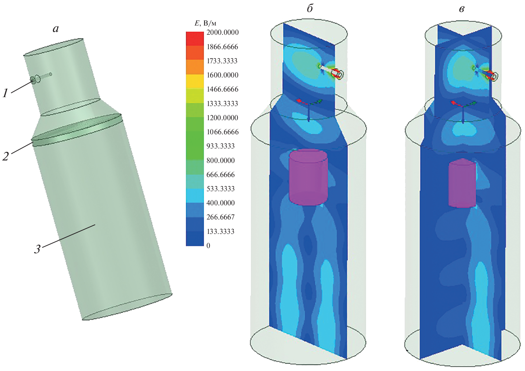 The main design options for supplying SHF energy to the end wall of a cylindrical resonator were considered. 2 types of designs for coaxial feed of energy were selected and optimized, differing in the location of the coaxial line relative to the required direction of wave propagation. As a result of the calculations, the electric fields inside the cylindrical chamber and in the horn coaxial antennas were found, and the SWR of the systems was determined. A comparison in distribution of the electric field when metal objects were placed in the chamber was carried out. The areas of occurrence of a plasma SHF discharge on the surface of a cylindrical object were shown.