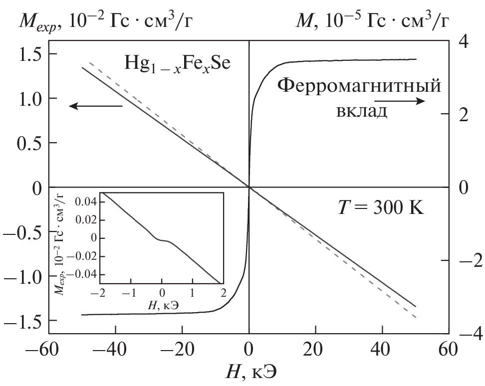 On the single crystals of Hg1 – xFexSe (х ≤ 0.06 at %) with an extremely low concentration of the impurity iron atoms at room temperature (T = 300 K), high-temperature ferromagnetism of a new type in a impurity donor electron system was experimentally discovered.