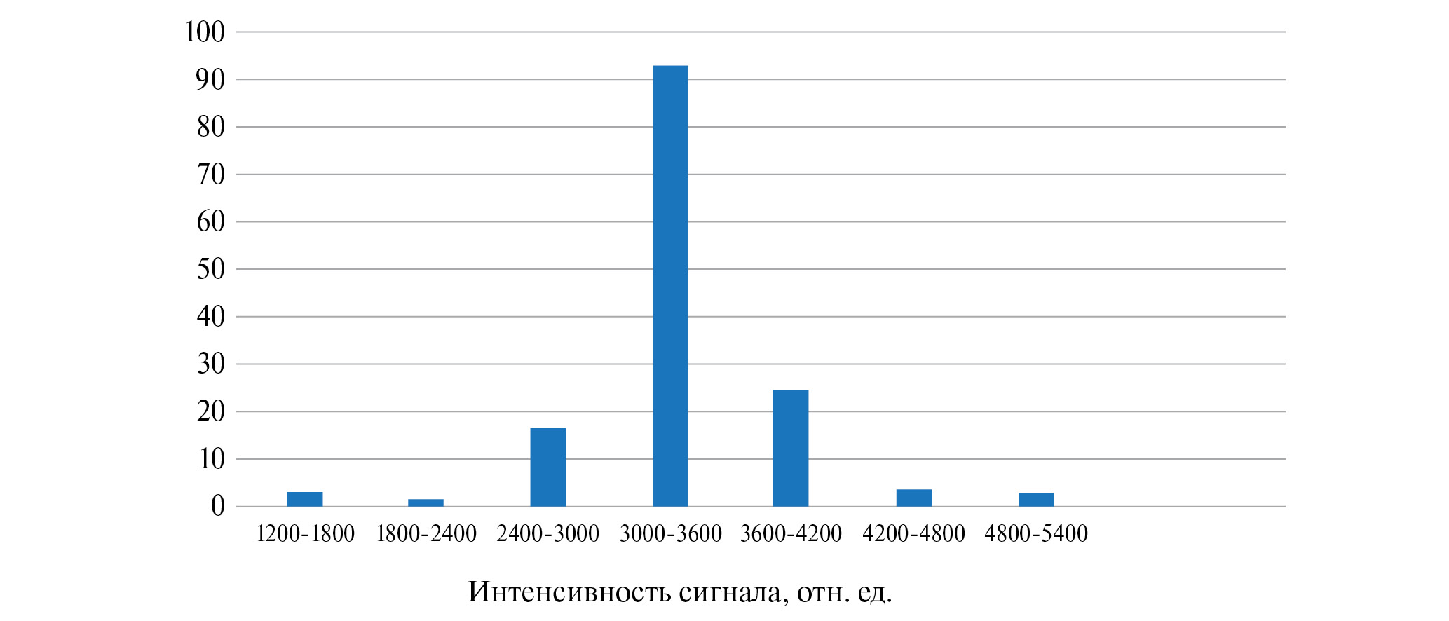 Рис. 3. Распределение интенсивности SERS-сигнала от раствора аптамеров к BoNT c концентрацией 35.0 нМ на подложке