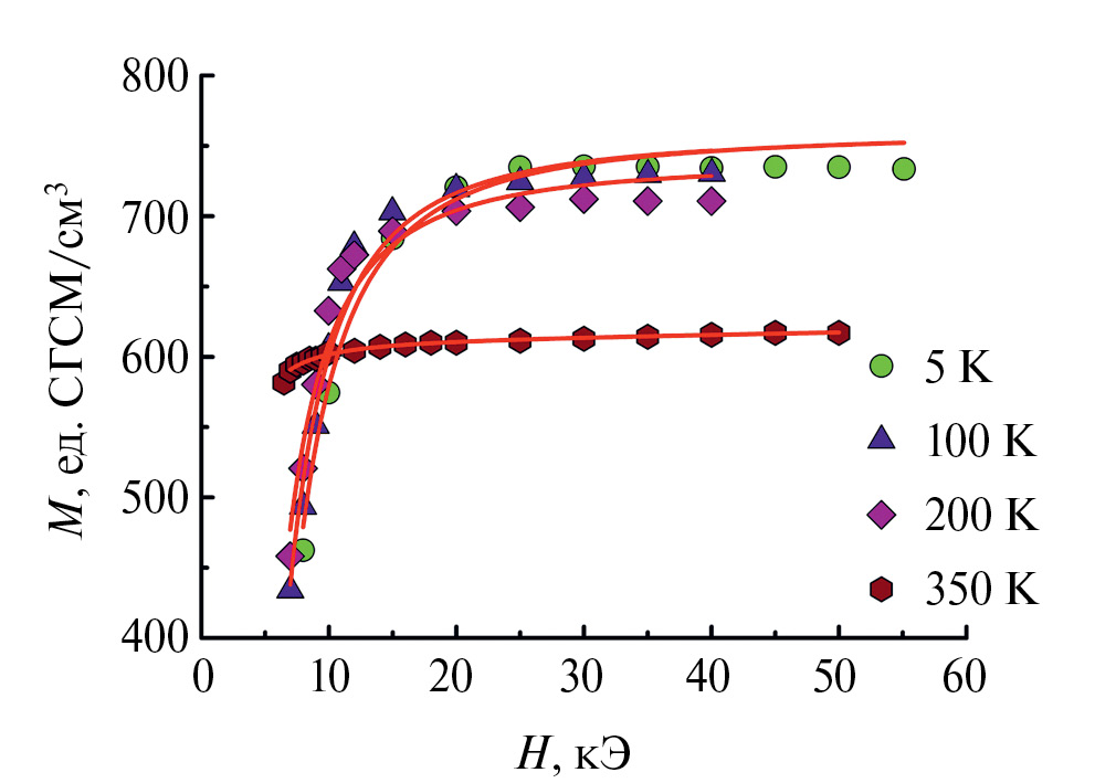 Полевые зависимости намагниченности M(H) были измерены с помощью СКВИД-магнитометра (S600X, Cryogenic Ltd.) (рис. 2) в магнитных полях до 50 кЭ в температурном интервале T = 5 – 350 К.