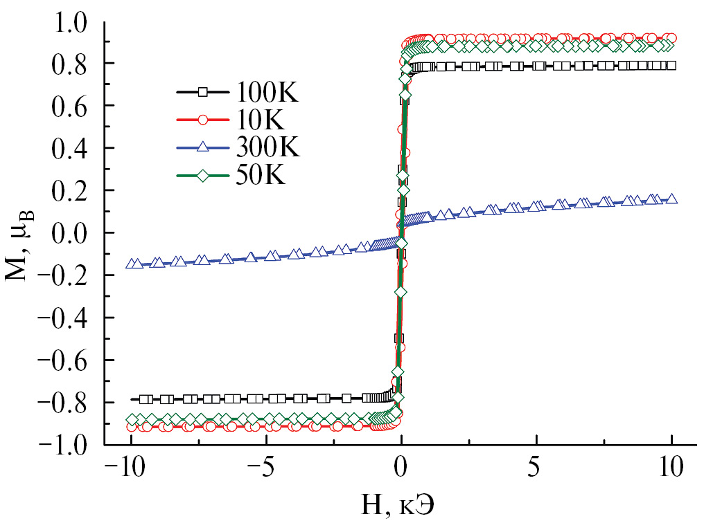 Намагниченность измерялась на приборе PPMS-9 в диапазоне температур от 10 до 300 К в режимах охлаждения в нулевом поле (ZFC) и в режиме охлаждения в поле (FC). Петли магнитного гистерезиса измерялись в диапазоне полей до 5 Тл.