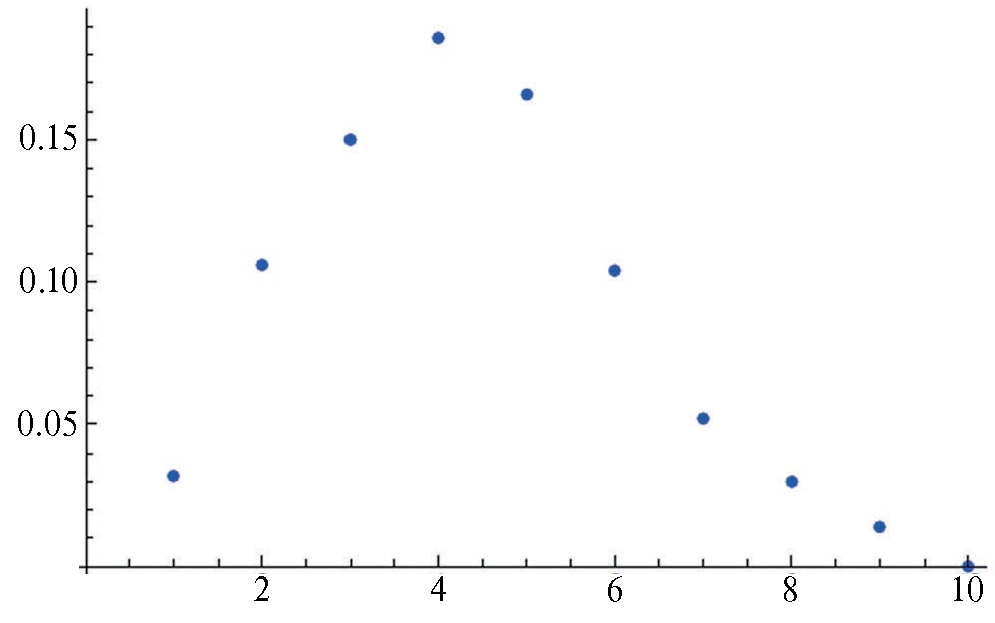 Плотность вероятности ρ(Ns |Et) получить отклик калориметра Et, когда через него проходит Ns нуклонов-спектаторов, найденная по формуле (3), представлена на рис. 3.