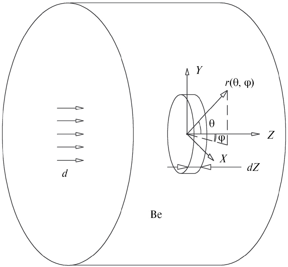 Рис. 1. Геометрия дейтронного облучения толстого бериллиевого слоя.