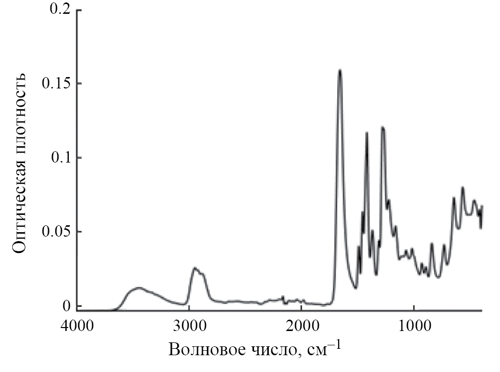 Рис. 1. ИК-фурье-спектр нарушенного полного внутреннего отражения поливинилпирролидона в области 4000—400 см-1.