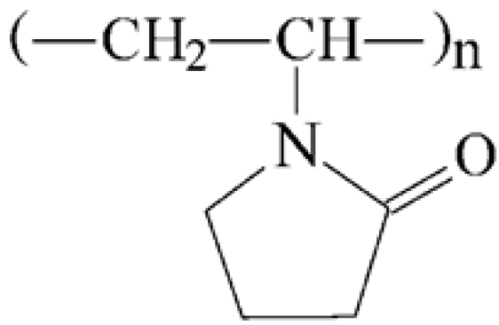 ПВП является инертным, нетоксичным, аморфным полимером, имеет высокую гидрофильность и биосовместимость. Он обладает высокой температурой стеклования (Tg = 435 К [13]) из-за присутствия достаточно большого пирролидонового цикла с карбонильной группой, благодаря которой образуются различные комплексы с неорганическими солями [14].