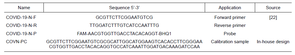 COVN-PC | GCGTTCTTCGGAATGTCGCGCATTGGCATGGAAGTCACACCTTCGGGAA CGTGGTTGACCTACACAGGTGCCATCAAATTGGATGACAAAGATCCAA | Calibration sample | In-house design |