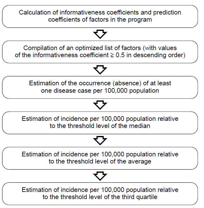 Mathematical calculations for explanatory models were performed similarly to the calculations for prediction models; the variables of climatic factors for the previous years were replaced with numeric values for the current epidemic season [21]. The step-by-step algorithm for calculating explanatory models is shown in Figure.