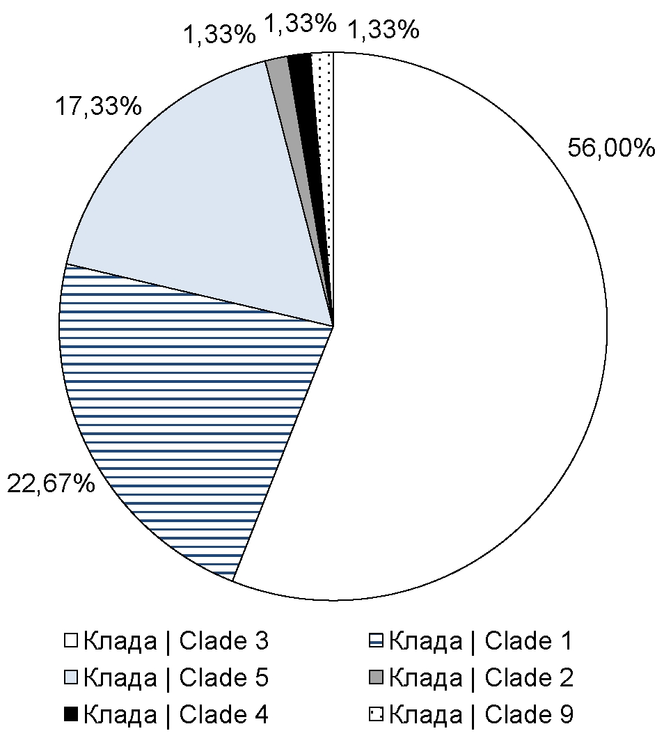 Introduction. Varicella-zoster virus (VZV), the causative agent of the disease of the same name and herpes zoster, is phylogenetically divided into 8 clades, the distribution of which is characterized by geographic reference to certain regions of the world. For most countries, VZV clades circulating in their territories have been identified, however, such information is almost unavailable for Russia.