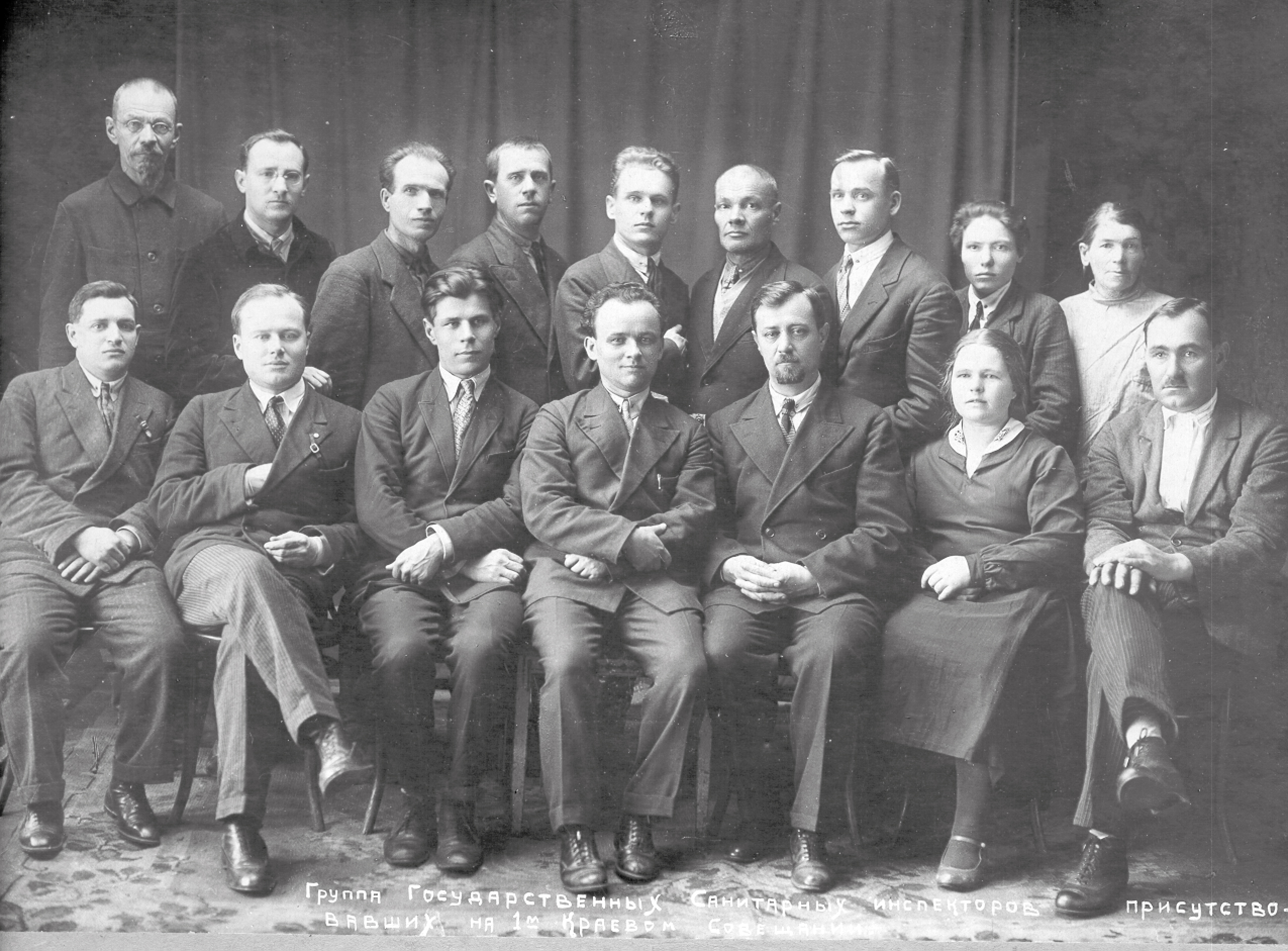 Рис. 2. Группа государственных санитарных инспекторов на 1-м Краевом совещании. Старший госсанинспектор Кировской области И.И. Ёлкин — в середине первого ряда.