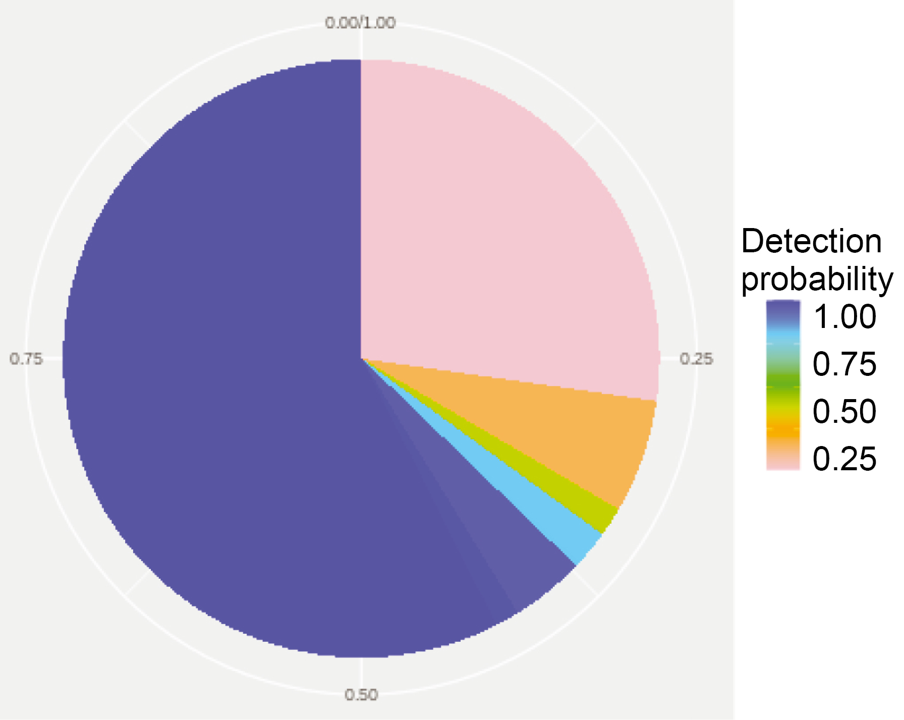 Fig. 1. Distribution of gene families of the pan-genome of S. pneumoniae serogroup 15 strains. The color of the sector reflects the probability of identification of the gene family in the genomes of isolates. The blue color shows highly conservative («core genome») gene families. For a color version of the picture, see the journal’s website.
