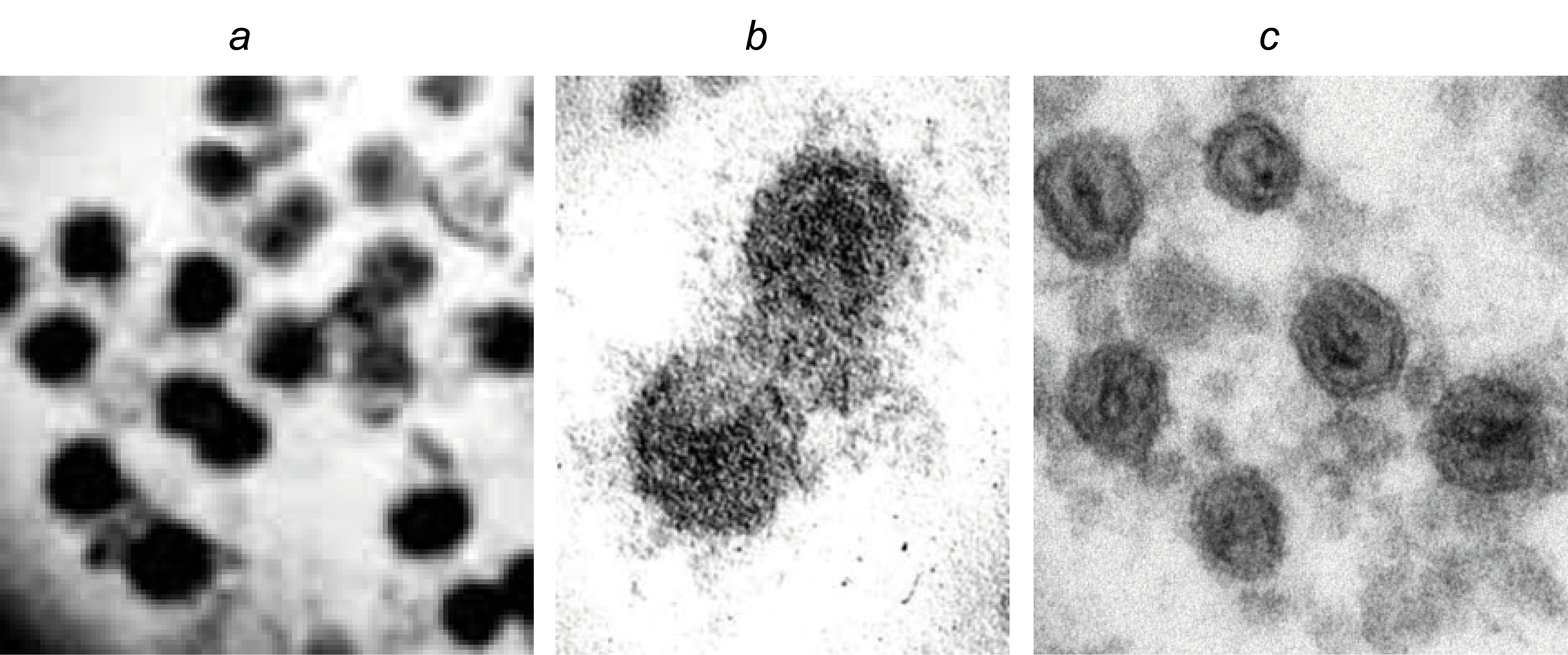 a and b — HIV-1B VLPs; c — VLP SHIV89.6P VLPs.