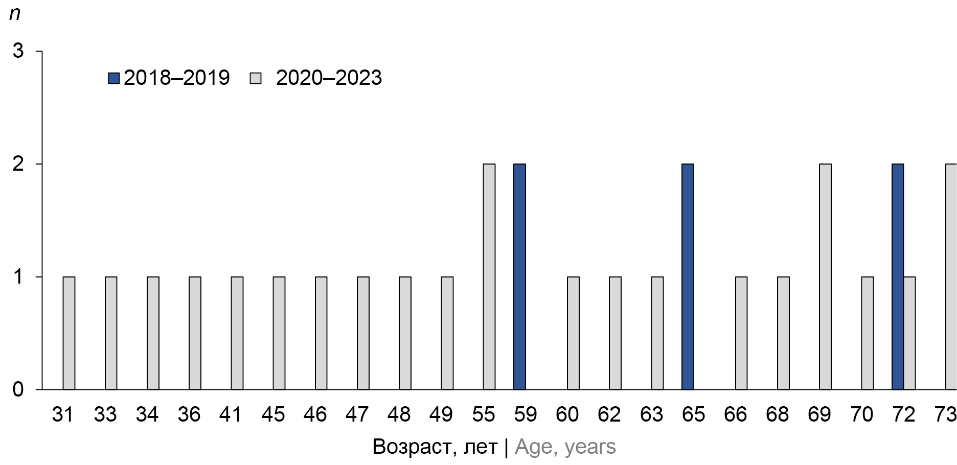 Results. In the cohorts of patients with perinatal listeriosis (PL) and meningitis-septicemia (MS), invasive listeriosis had a year-round occurrence with slight upswings in March–April and July–November. During the COVID-19 pandemic, in the MS group, the minimum age of patients decreased to 31 years and the proportion of deaths increased 1.57-fold compared to 2018–2019. During the pandemic, an increase in the diversity of L. monocytogenes genotypes was observed, along with changes in the spectrum of pathogen genotypes throughout the pandemic stages.