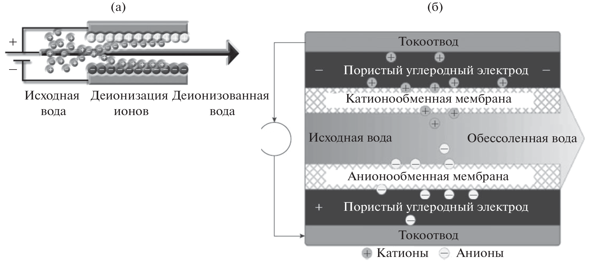 - Вольфкович, Ю.М., Михалин, А.А., Рычагов, А.Ю., Кардаш, М.М. Емкостная деионизация воды с электродами из нанопористого активированного угля и катионо-анионообменной мембраной мозаичной структуры. Физикохимия поверхности и защита металлов. 2021. Т. 57. С. 1. [Volfkovich, Yu.M., Mikhalin, A.A., Rychagov, A.Yu., and Kardash, M.M., Capacitive Deionization of Water with Electrodes Based on Nanoporous Activated Carbon and a Mosaic Cation-Anion Exchange Membrane, Protection of Metals and Physical Chemistry of Surfaces, 2021, vol. 57, p. 68.]