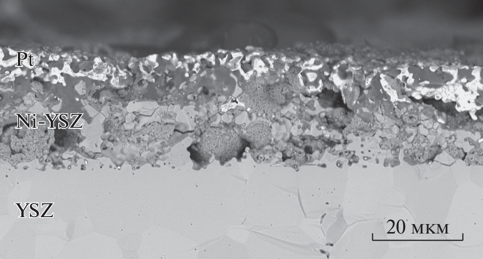 - Ковальчук, А.Н., Кузьмин, А.В., Осинкин, Д.А., Фарленков, А.С., Соловьев, А.А., Шипилова, А.В., Ионов, И.В., Богданович, Н.М., Береснев, С.М. Единичный ТОТЭ с несущим Ni-YSZ-анодом, двухслойным пленочным YSZ/GDC-электролитом и La2NiO4 + δ-катодом. Электрохимия. 2018. Т. 54. С. 623. [Koval’chuk, A.N., Kuz’min, A.V., Osinkin, D.A., Farlenkov, A.S., Solov’ev, A.A., Shipilova, A.V., Ionov, I.V., Bogdanovich, N.M., and Beresnev, S.M., Single SOFC with supporting Ni-YSZ anode, bilayer YSZ/GDC film electrolyte, and La2NiO4 + δ cathode, Russ. J. Electrochem., 2018, vol. 54, p. 541.]
