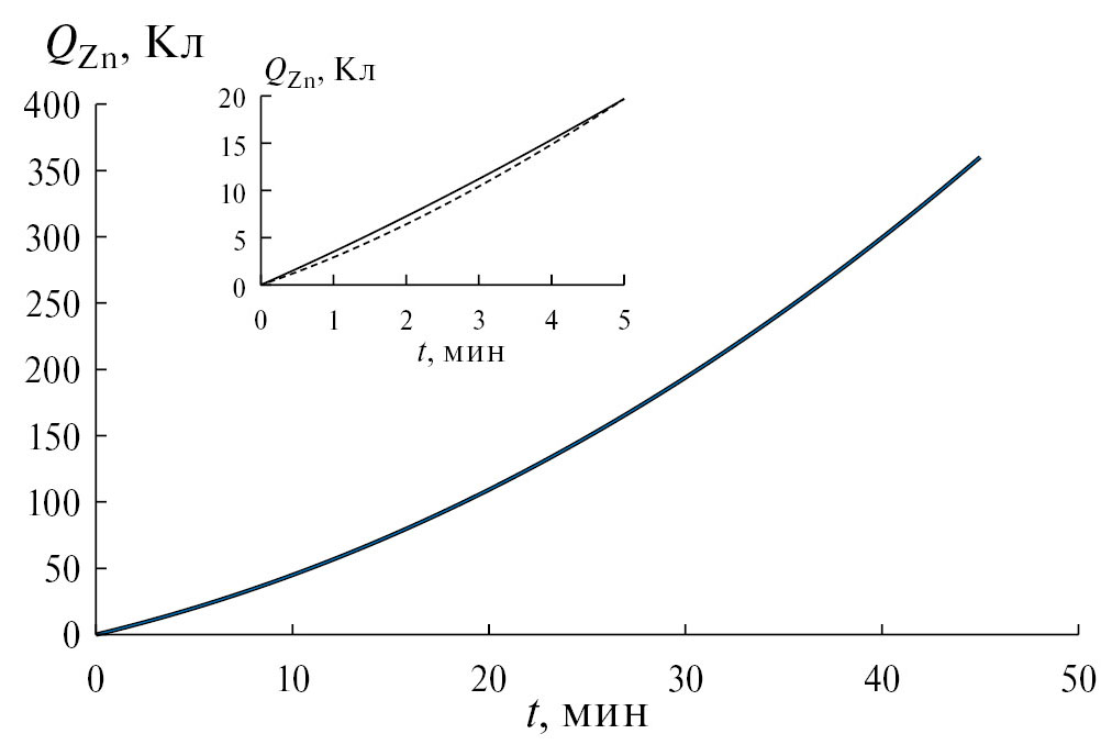 где QZn, c, j, QZn, a, j – катодное и анодное количества электричества, рассчитанные численным интегрированием опытных зависимостей Ic(t) и Ia(t) в j-м цикле, Кл.
