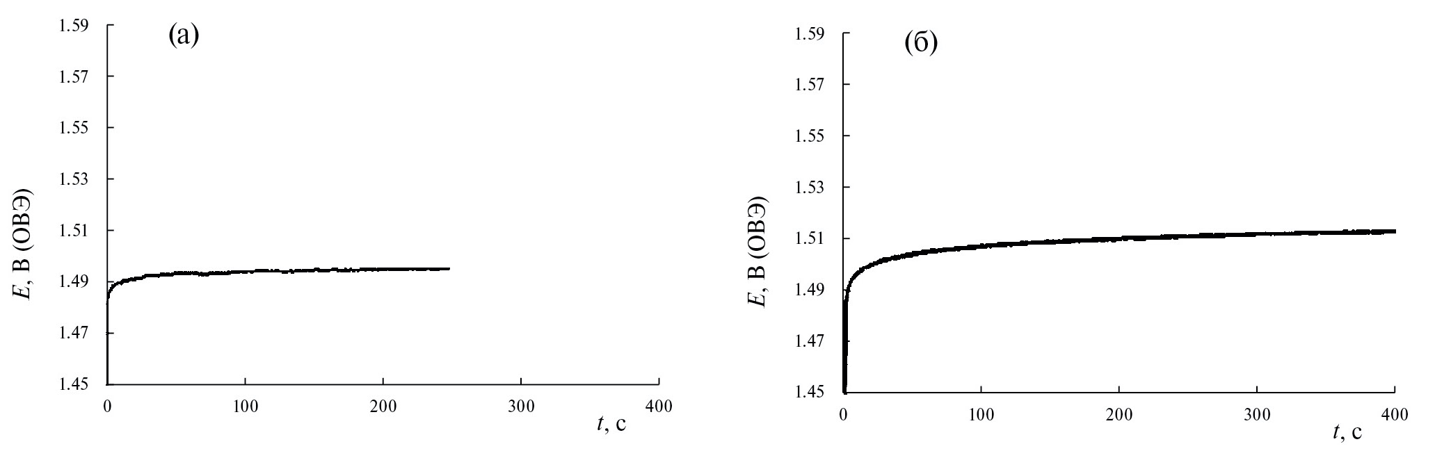 - Гальваностатические измерения. Снимались при токе 20 мА/см2 в течение 400 с при температуре 90°С.