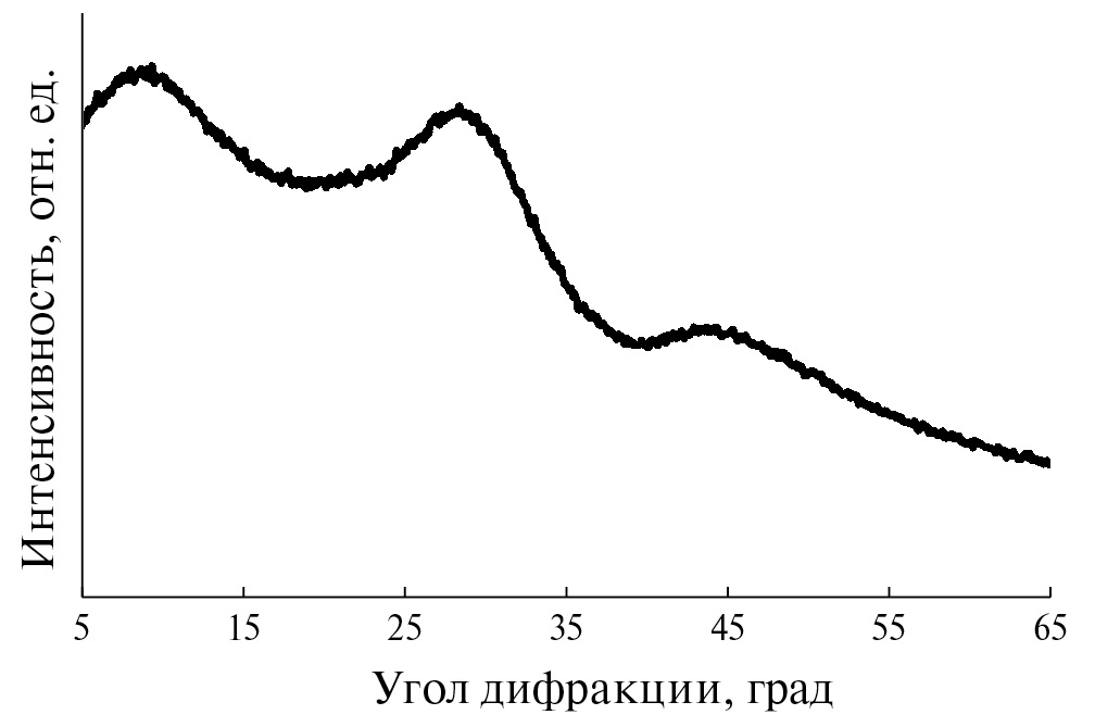 Рис. 1. Рентгеновская дифрактограмма, полученная на закаленном из расплава герметике CaO–SiO2–B2O3.