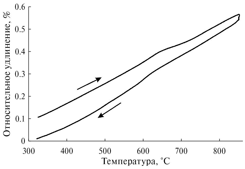Рис. 3. Дилатометрическая кривая исследуемого нами герметика после выдержки при 950°С в течение 1 ч.