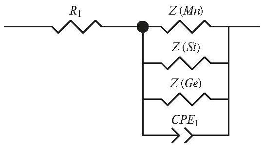 Моделирование сложных годографов импеданса для двухфазных образцов должно начинаться с составления общей схемы процесса, которая в данном случае представляет собой параллельно соединенные импедансы для марганца, кремния и германия (рис. 4) [13].