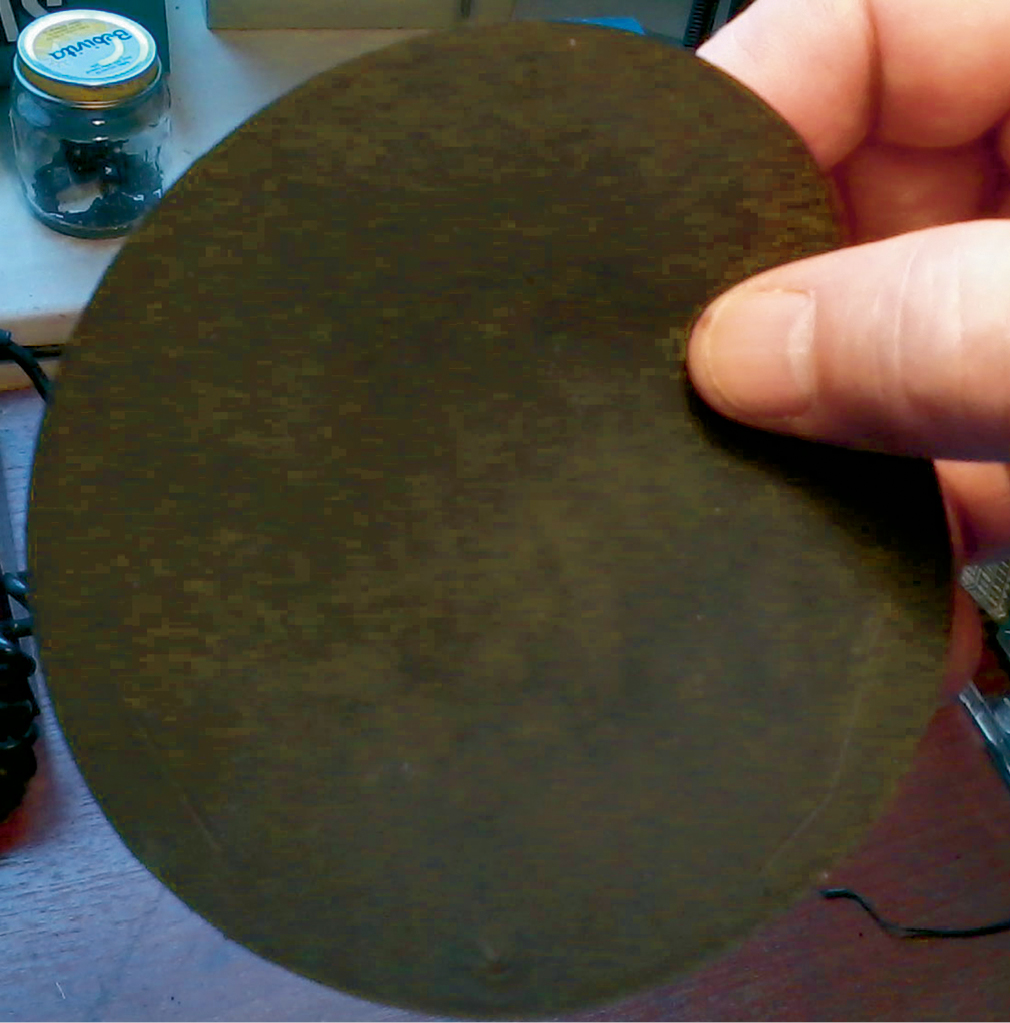 Для приготовления нанокомпозита в водный раствор резорцина и формальдегида с добавкой катализатора Na2CO3 вводили некоторое количество УНТ и обрабатывали ультразвуковым концентратором. Далее конденсированную фазу осаждали на фильтре и осадок желировали для получения аквагеля. После этого пленку нанокомпозита с аквагелем сушили под прессом до постоянного веса в сушильном шкафу. Карбонизацию УНТ/RF-ксерогель нанокомпозита проводили в вакууме при 800°С в течение 1 ч. На рис. 1 показано фото типичного образца композитной углеродной нанобумаги. В зависимости от толщины и плотности механические свойства нанобумаги варьируются от эластичных и мягких, подобно бумаге, до жестко-упругих, подобно мембране.