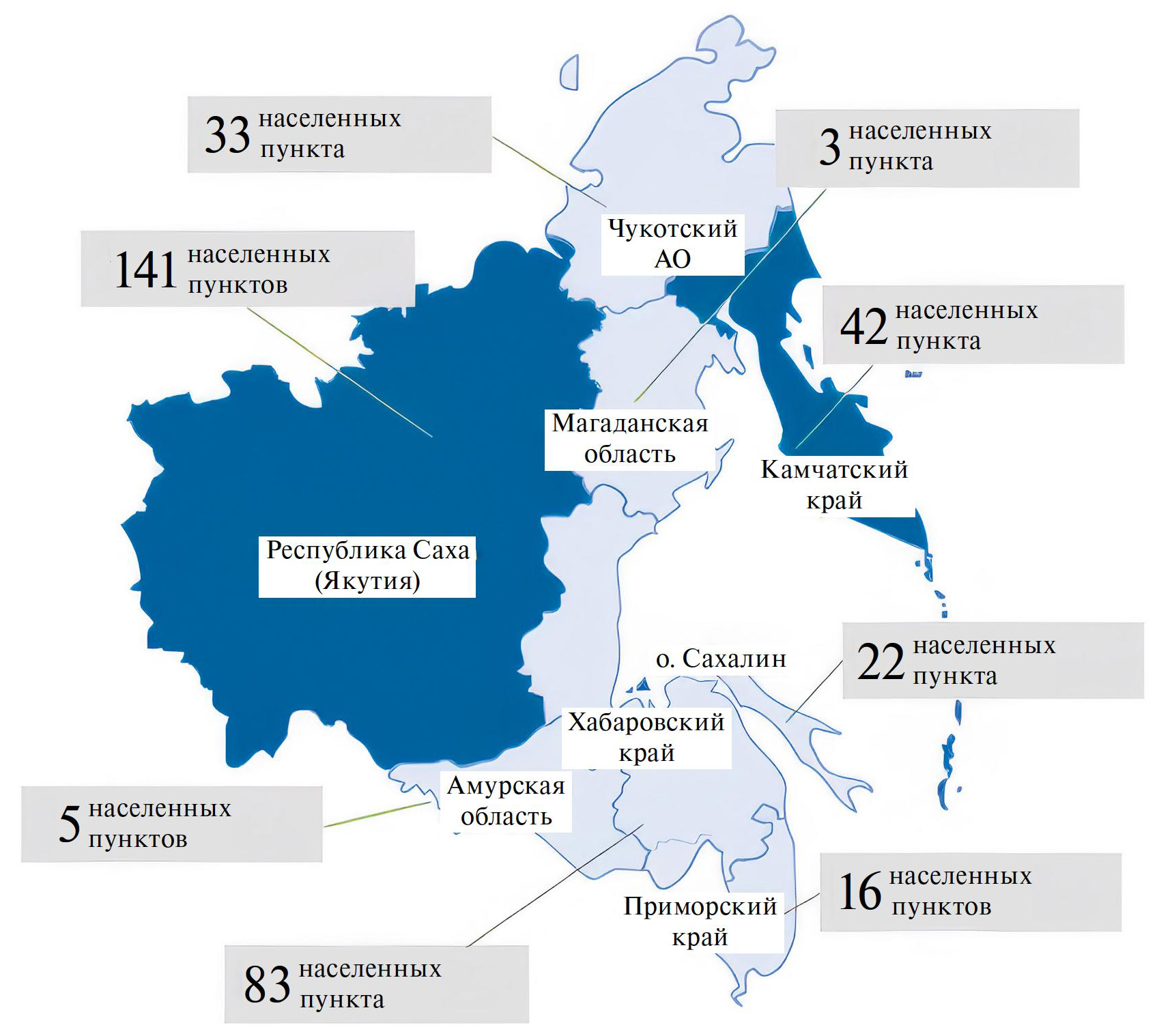 Рис. 2. Объекты децентрализованного электроснабжения в Дальневосточном федеральном округе РФ.
