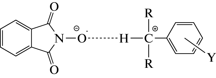 The kinetics of the oxidation of para-tert-butylcumene to hydroperoxide by molecular oxygen in the presence of N-hydroxyphthalimide has been studied. Based on the study of the regularities in the formation of hydroperoxide and non-target reaction products, a mathematical model of the process was obtained that adequately describes the change in the main components of the reaction concentration over time. The main role of N-hydroxyphthalimide is that it converts peroxide radicals into the corresponding hydroperoxides, thereby reducing the formation of non-target reaction products by reducing the quadratic termination rate. Simultaneously formed N-oxyphthalimide radicals increase the rate of hydrocarbon oxidation. Thus, the use of N-hydroxyphthalimide in hydrocarbon oxidation processes results in an increase in the rate and selectivity of hydroperoxide formation.