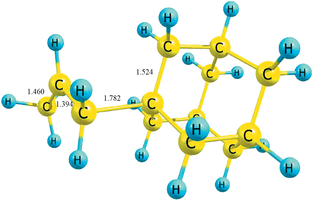 Рис. 2. ПС реакции Ad+ + C3H6 → Ad – CH2 – C+H – CH3 (мнимая частота ПС 234.59i).