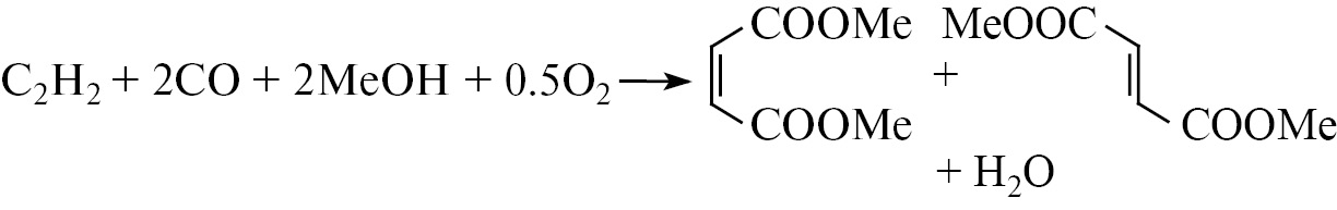 Образование разных продуктов в процессе карбонилирования ацетилена, обусловленное его сложным механизмом, усложняет технологические схемы. Настоящая работа является продолжением многолетних исследований реакций с участием оксида углерода(II) и ацетилена, выполняемых под руководством профессора О.Н. Темкина [1–11]. Цель работы – поиск каталитической системы и условий для селективного получения диметилфумарата окислительным карбметоксилированием ацетилена.