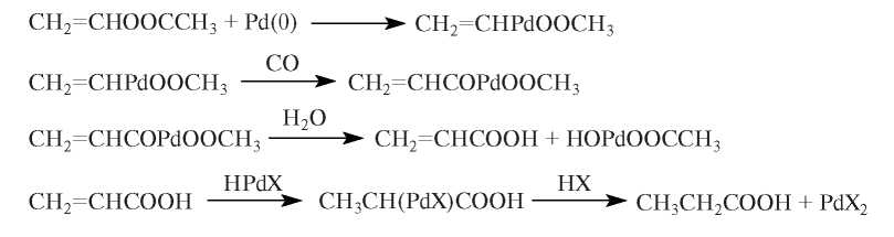 Появление в реакционном растворе небольших количеств акриловой и пропионовой кислоты можно объяснить схемой с участием Pd(0) (схема 3).