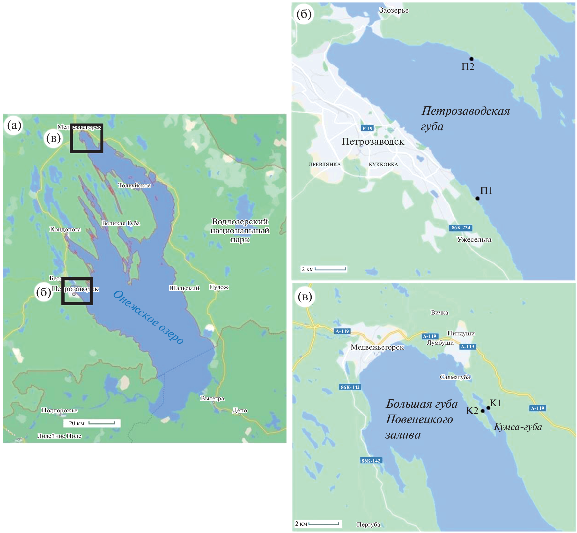 - Васильева Е.П. Современное состояние донных отложений Большой губы Повенецкого залива Онежского озера // Большая губа Повенецкого залива Онежского озера. Петрозаводск. Карельский научный центр. Институт водных проблем Севера, 1992. С. 34–40.