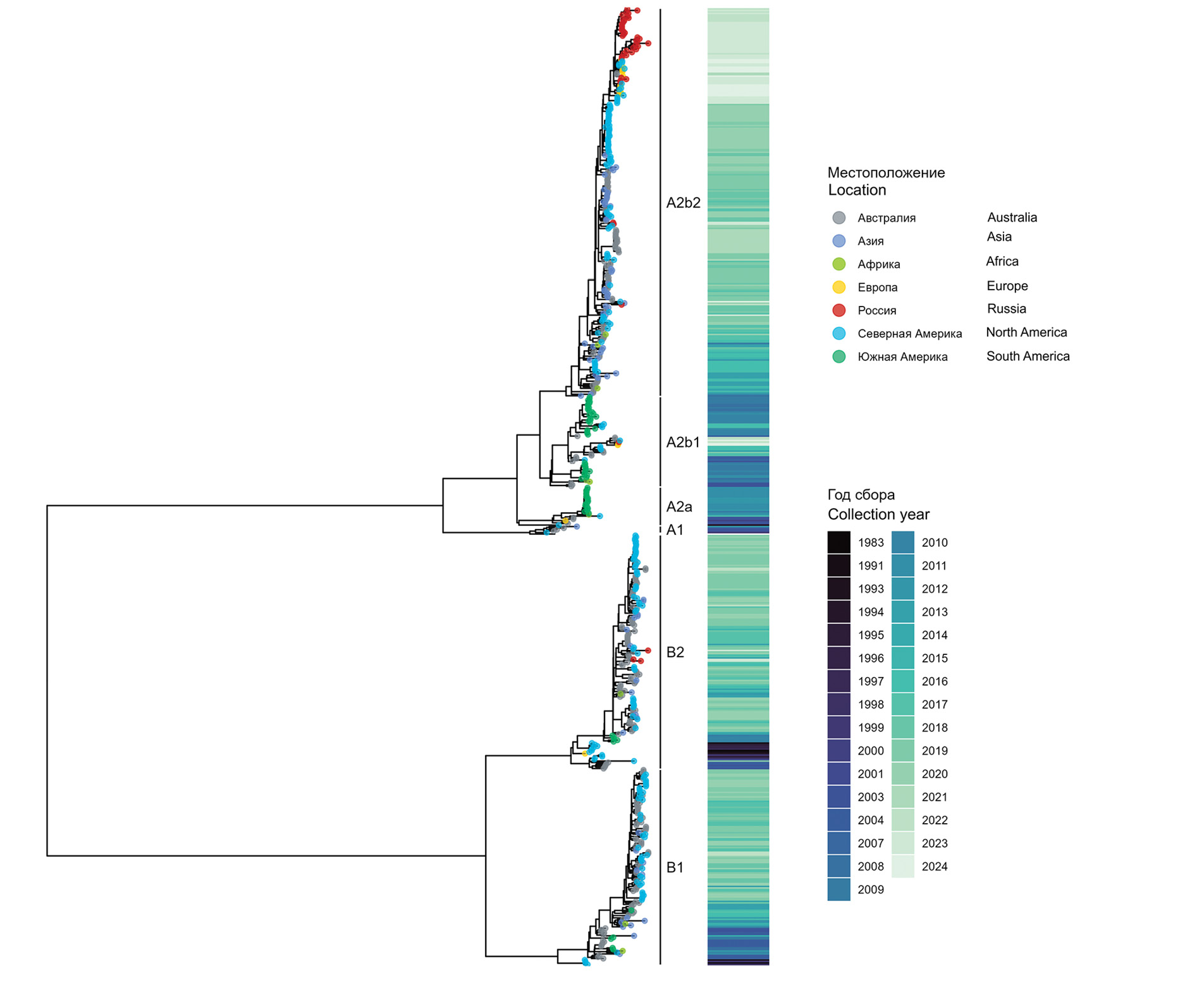 Conclusion. The study provides insights into the genetic diversity of hMPV strains circulating in various regions of the Russian Federation. Understanding the genetic variability of hMPV is crucial for comprehending viral evolution, transmission dynamics, and mechanisms of immune evasion, which influence the development of vaccines and antiviral drugs.