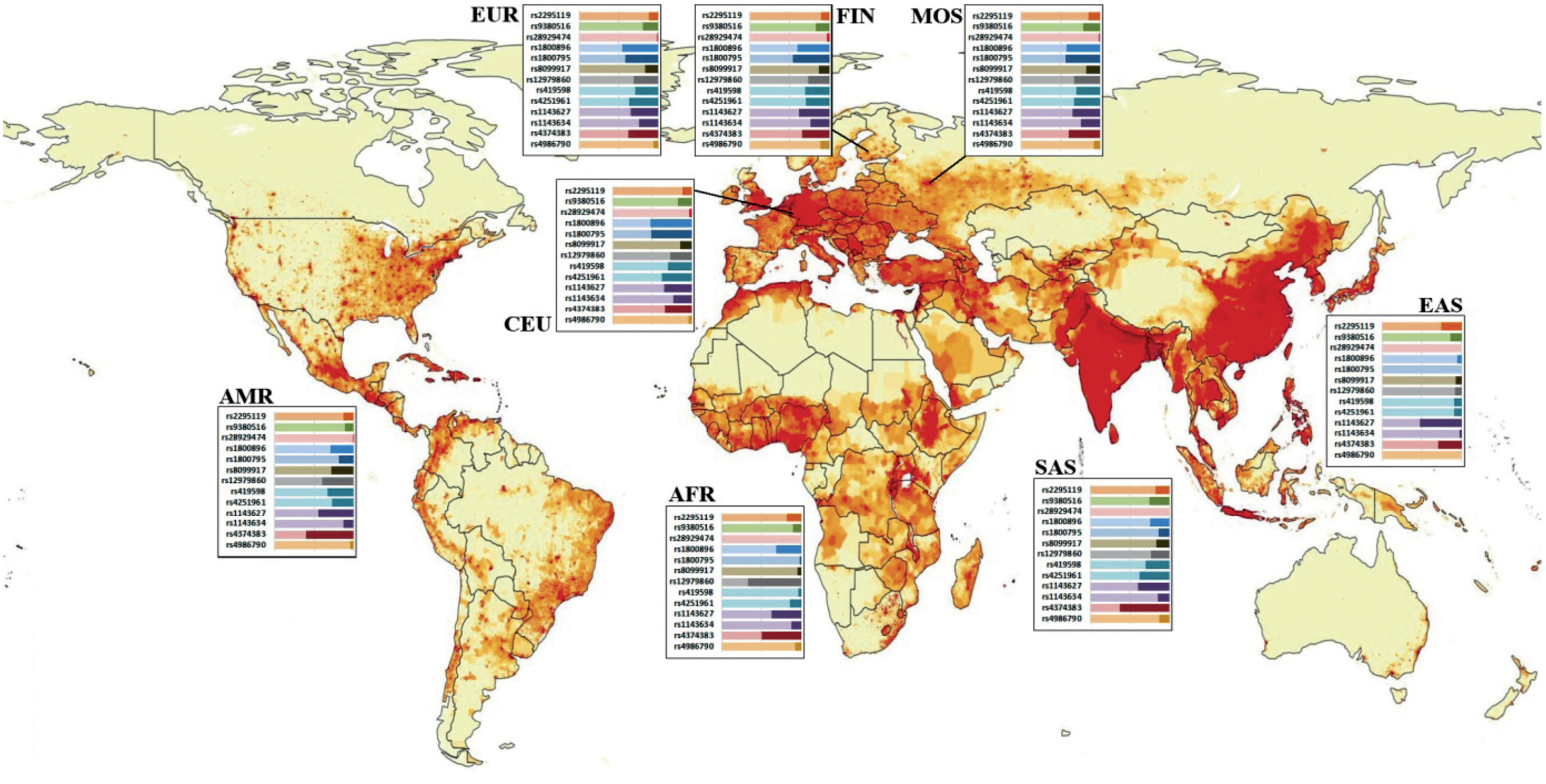 Распределение частот аллелей полиморфизмов генов человека, связанных с вирусными инфекциями