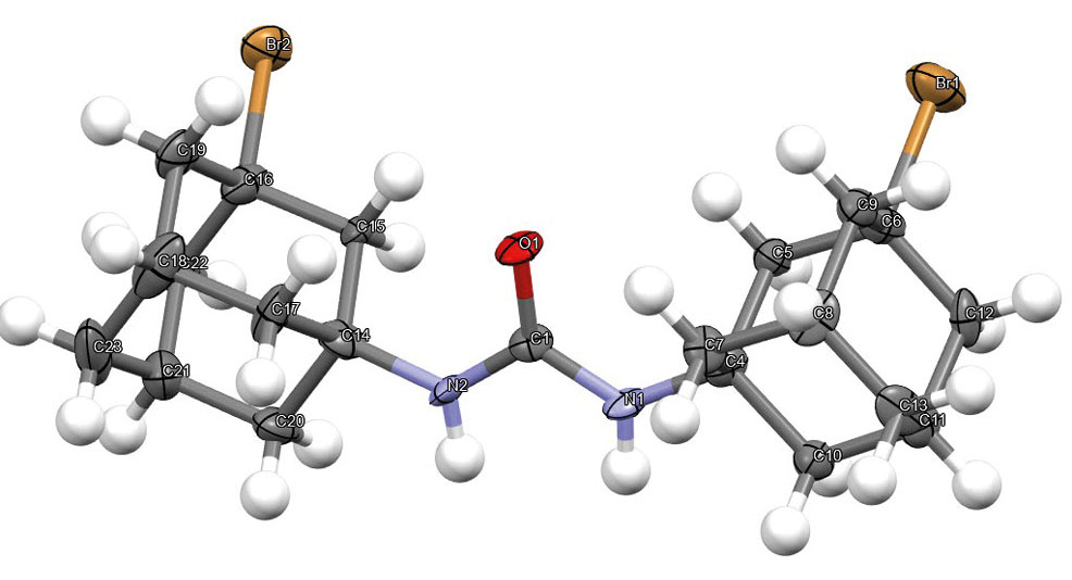 Строение симметричной 1,3-бис(3-бромадамантан-1-ил)мочевины 4k подтверждали методом рентгеноструктурного анализа (РСА) (рис. 2).