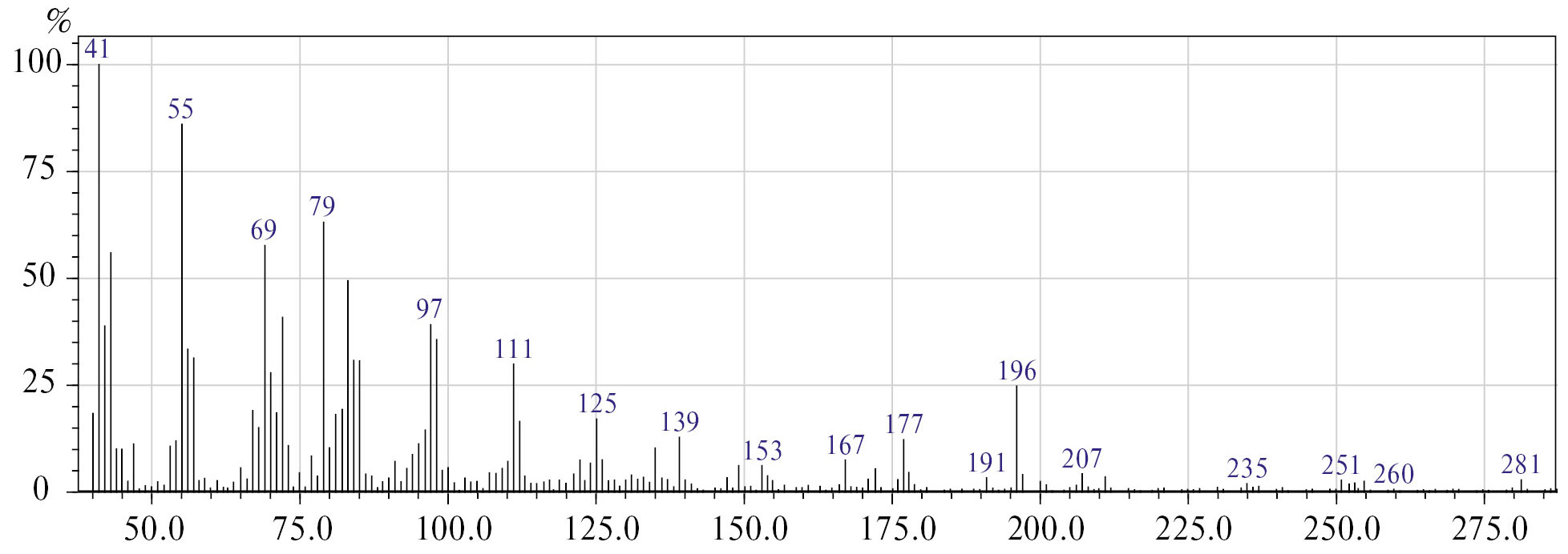 Рис. 5. Масс-спектр 1-метилциклододец-1-ена 9