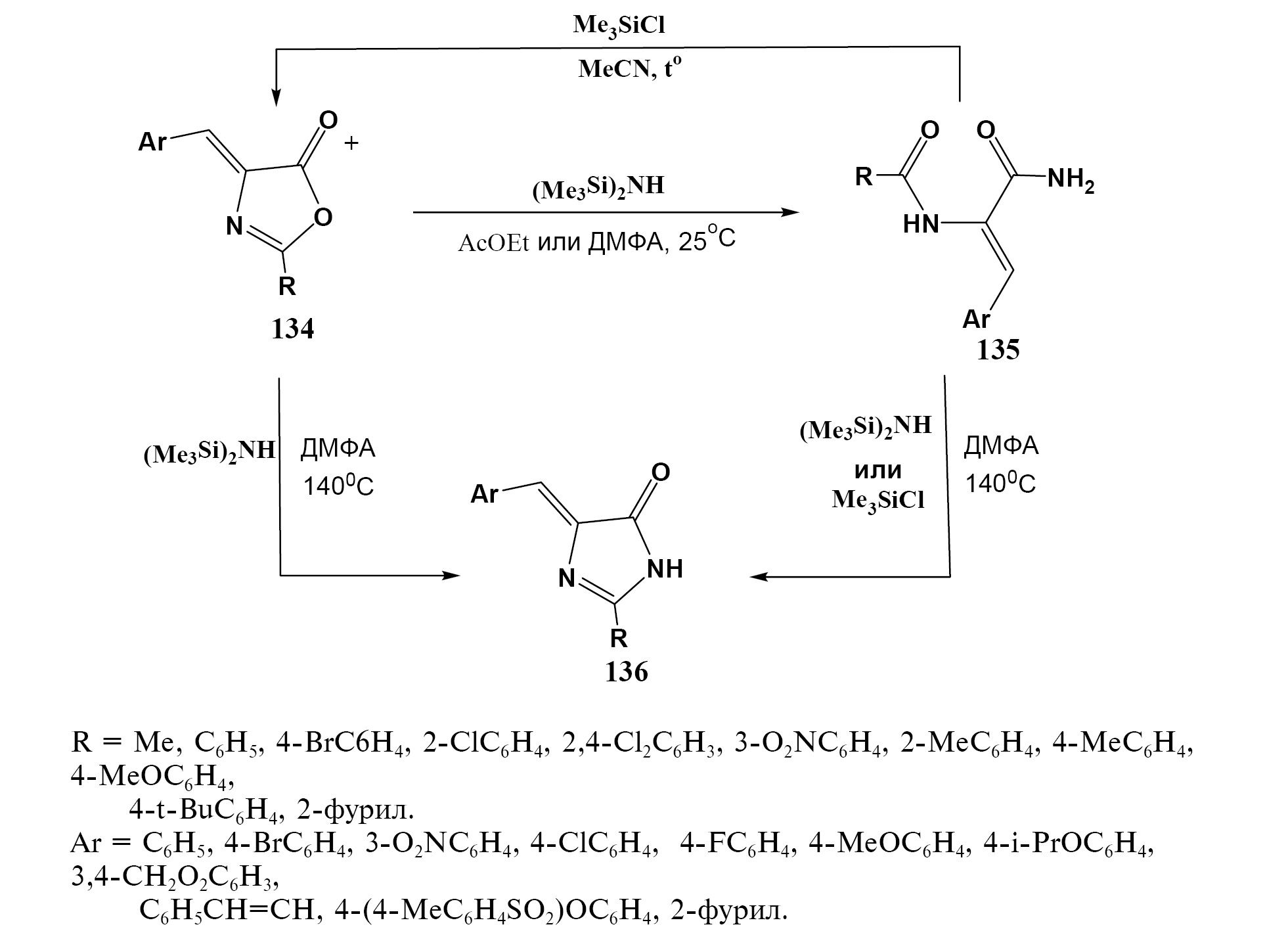 По данным [2], реакция протекает через образование N-силилированного аналога оксазолона – мюнхенона 10 (схема 3).