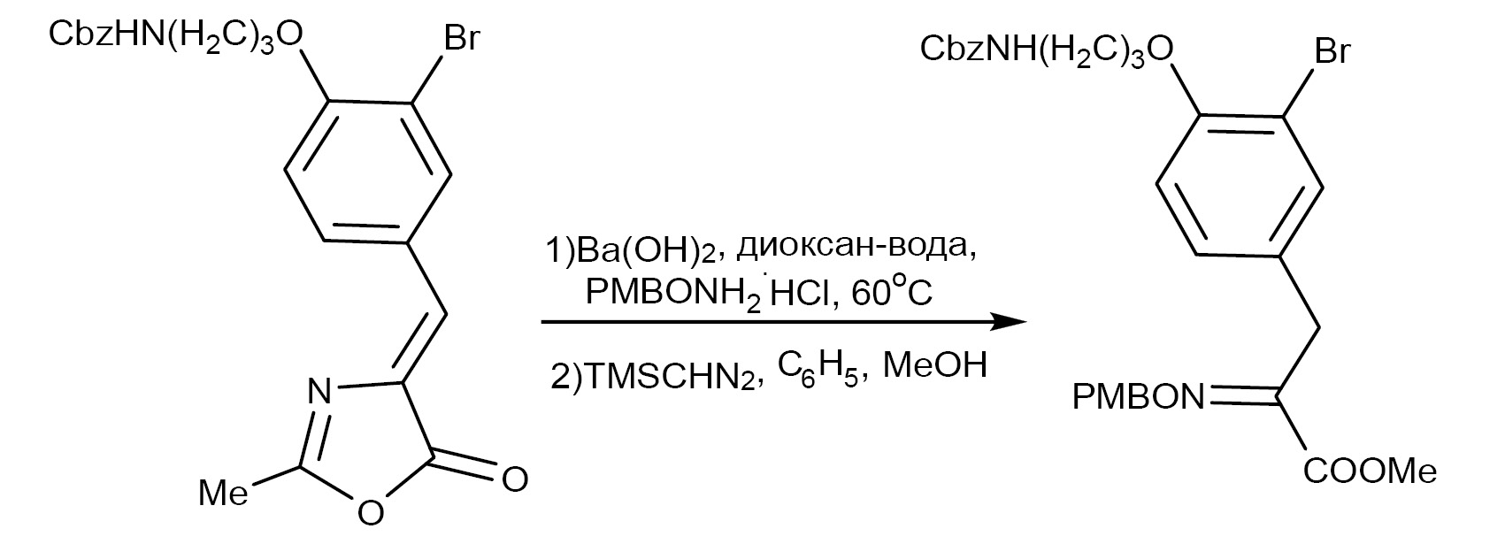 Оксазолон (38) после раскрытия цикла MeOH/ТМХС, без выделения, был подвергнут окислению м-хлорнадбензойной кислотой с образованием оптически активного изомера глутаминовой кислоты 39 (схема 13) [21, 22].