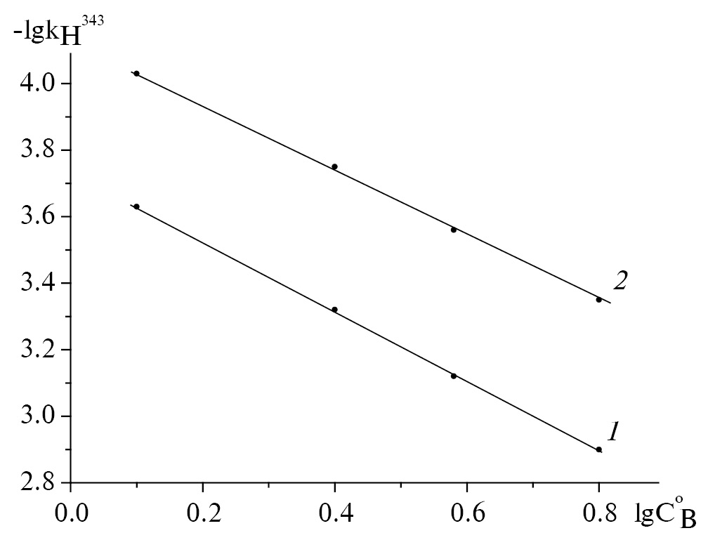 имеет первый порядок по NH-кислоте (рис. 4) и близкий к единице – по основанию (рис. 5). Следовательно, кинетическое уравнение имеет вид: