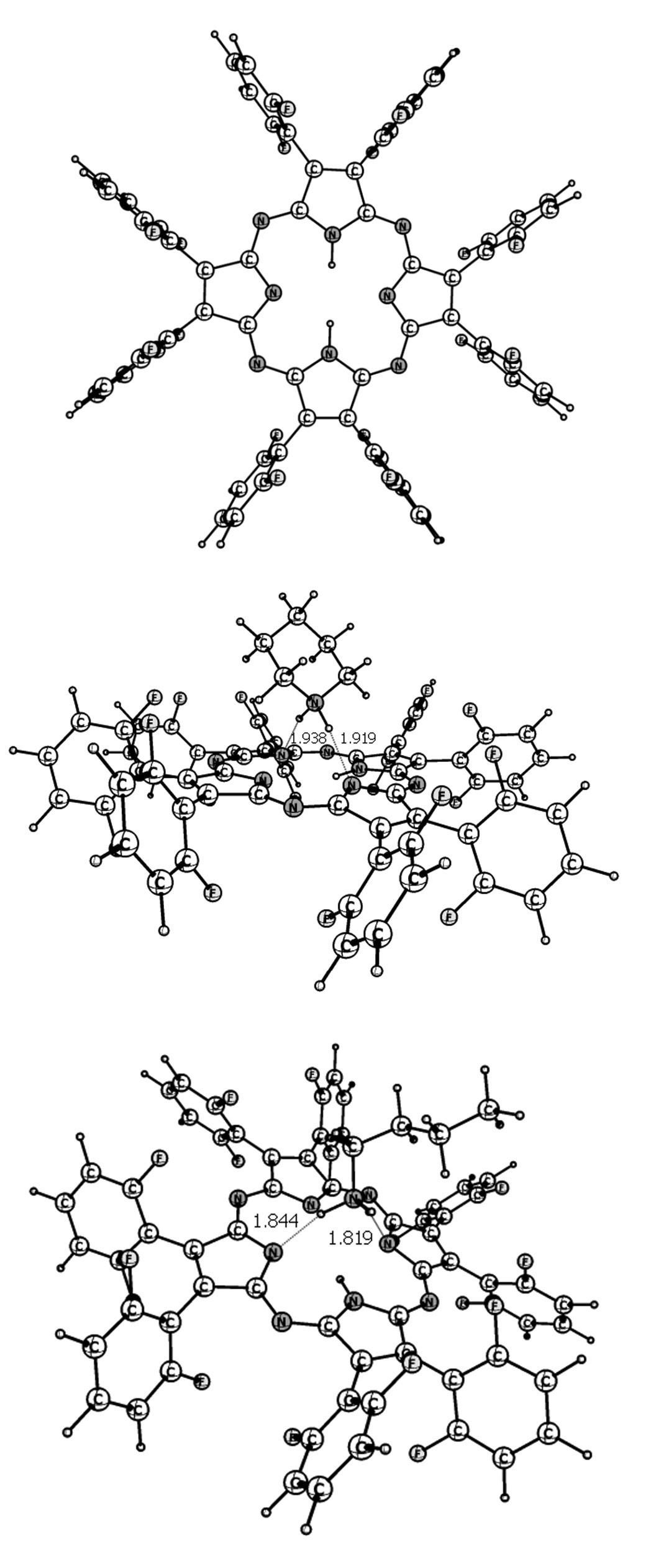 7. Fig. 6. Structures of H2Pa(C6H3F2)8 (a) and [HPa(C6H3F2)8 HB] with piperidine (b) and n-butylamine (c) optimized by the CAM-B3LYP method