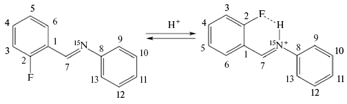 Для характеристики структурных фрагментов бензольного кольца с удаленным атомом азота во фрагментах C=N–Ph и C=NH+–Ph использовали те КССВ, которые хорошо отражают особенности геометрии молекулы. В настоящей работе была предпринята попытка использовать для этой цели КССВ с участием ядер азота с протонами и ядрами 13С: nJ(15N–1H) и nJ(15N–13C).