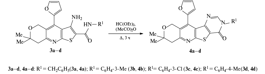 С использованием реакции перекрестного межмолекулярного цикломагнирования тридека-1,2-диена (1) с 2-(гепта-5,6-диен-1-илокси)тетрагидро-2Н-пираном (2) с помощью EtMgBr в присутствии катализатора Cp2TiCl2 (1–2–EtMgBr–Mg–[Ti], 12 : 10 : 40 : 32: 0.5, Et2O, 10 ч, 20–22°С получили 2,5-диалкилиденмагнезациклопентан (3). Кислотный гидролиз продукта цикломагнирования 3 и окисление реагентом Джонса образующегося тетрагидропиранильного эфира 5Z,9Z-диена 4 приводит к 5Z,9Z-эйкозадиеновой кислоте (5). Реакцию амидирования (5Z,9Z)-эйкоза-5,9-диеновой кислоты (5) с первичными аминами 6a–d осуществляли двумя разными методами. Так амидирование кислоты 5 с гексиламином (6a), 4-аминопиридином (6c), 3-амино-5-метилизоксазолом (6d) провели в ТГФ при 0°C в присутствии 4-диметиламинопиридина (DMAP) и 1-этил-3-(3-диметиламинопропил)карбодиимида гидрохлорида (EDC) [23], с этаноламином (6b) – в CH2Cl2 при 0°С в присутствии N,N'-карбонилдиимидазола [1], в результате были получены соответствующие амиды с выходами 91–94% (схема 2).