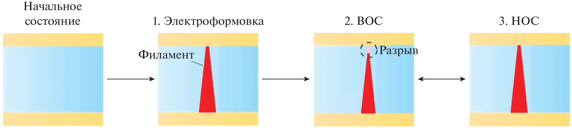 - Peng S., Zhuge F., Chen X., Zhu X., Hu B., Pan L., Chen B. Mechanism for resistive switching in an oxide-based electrochemical metallization memory // Appl. Phys. Lett. 2012. V. 100. № 7. P. 072101.